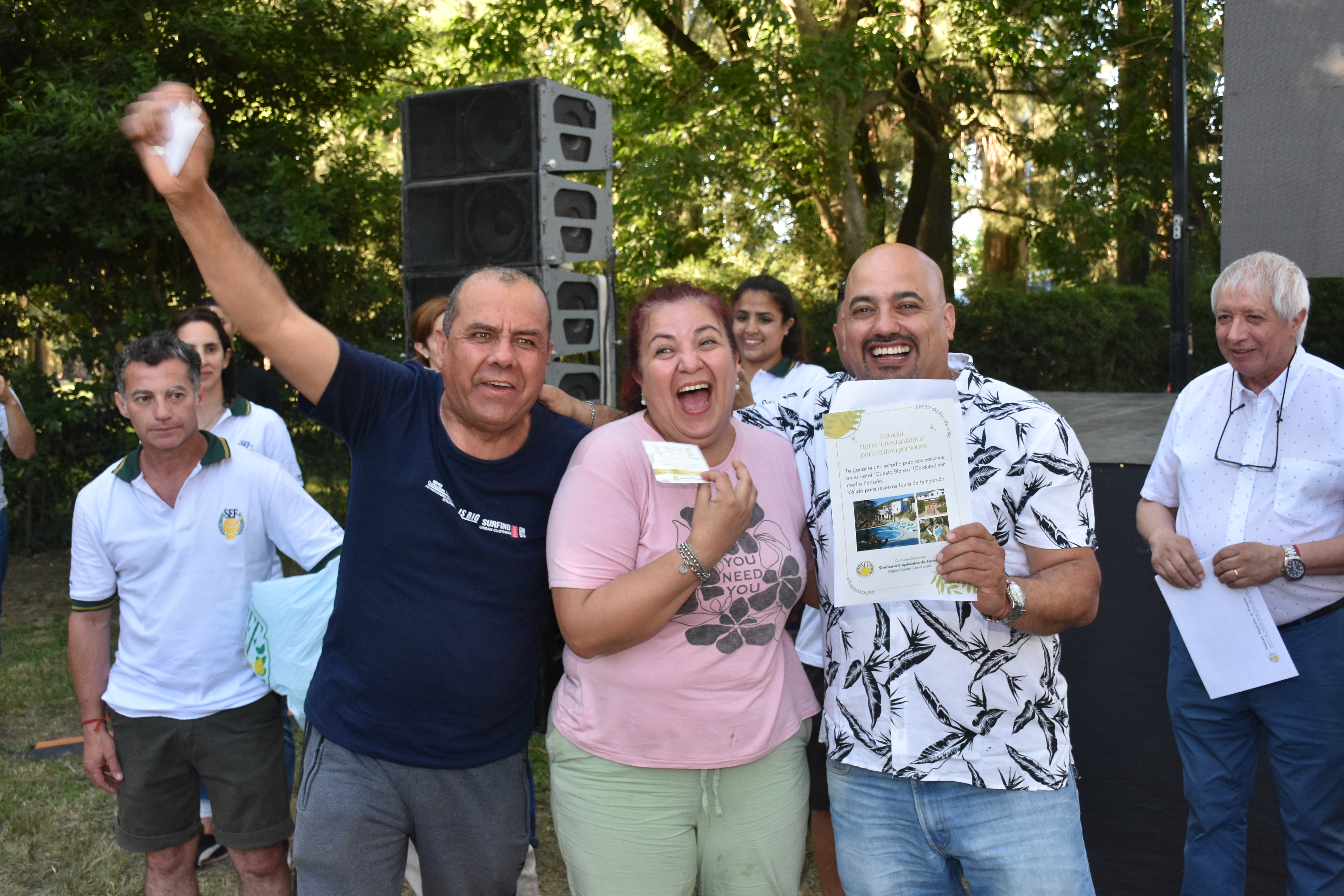 Los afiliados/as disfrutaron de un rico catering con barra de tragos y mesa de dulces. Sorteamos más de 60 electrodomésticos, heladeras, freezer, leds TV de 32, 40 y 50’’ además de vouchers por $50.000 en efectivo y dos estadías para el Hotel Cuesta Blanca” en Córdoba. También hubo show musical con la banda de cumbia santafesina “Los Leales” donde no faltaron sus clásicos temas para bailar.