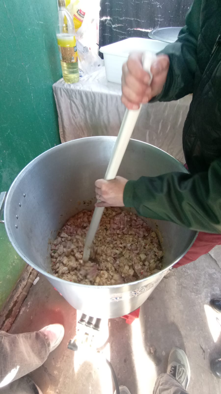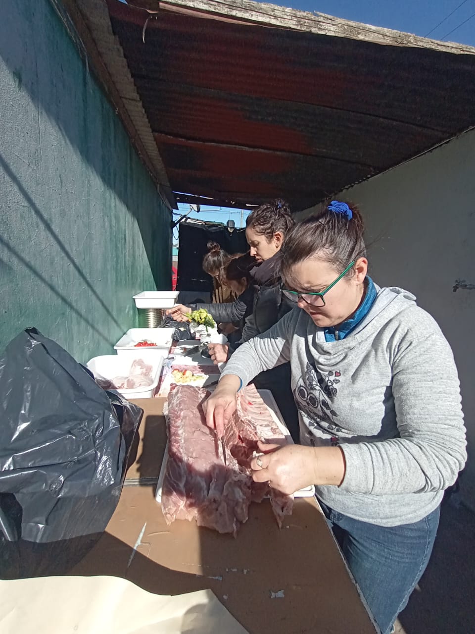Nos hicimos presentes en el lugar y preparamos un almuerzo: cerca del mediodía, la gente comenzó a acercarse al lugar a retirar su vianda de comida. Además, entregamos donaciones de alimentos no perecederos que recibimos del Torneo SEF.