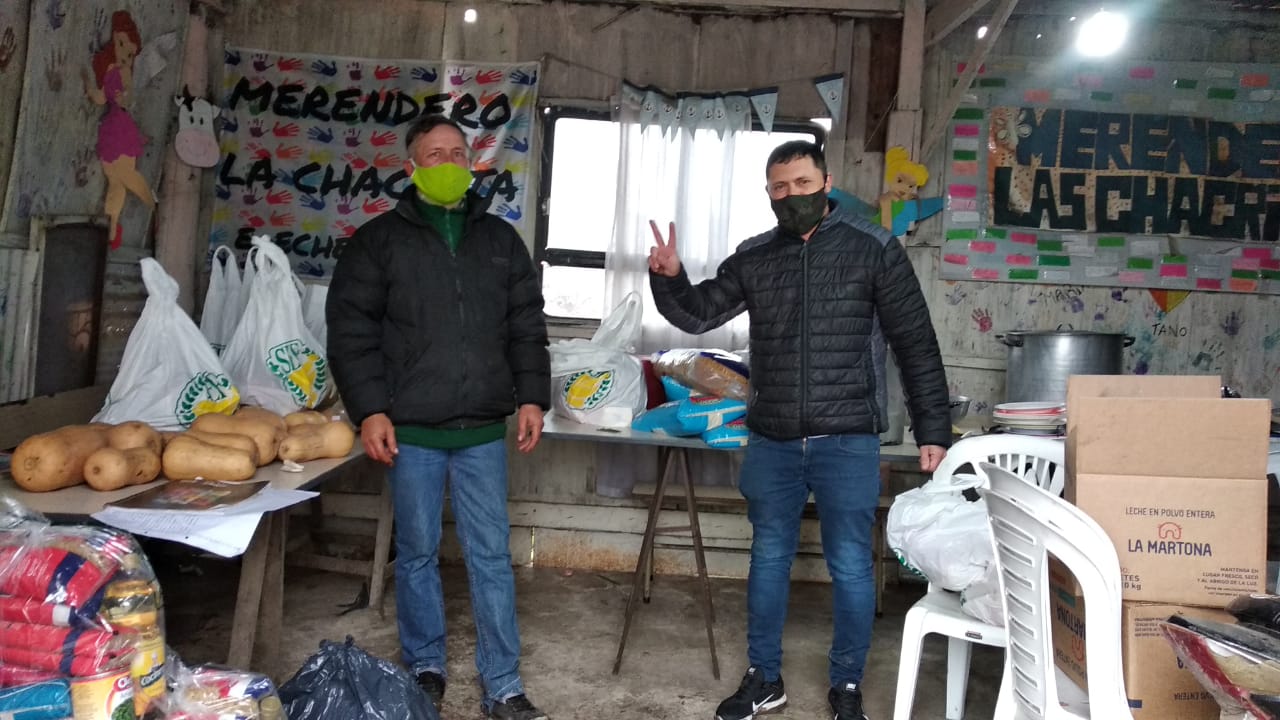 La segunda entrega tuvo lugar en el merendero “Las Chacritas” del barrio con el mismo nombre en Monte Grande (Esteban Echeverría). Un barrio que atraviesa muchas necesidades básicas, basta con señalar que carece de una red de agua potable. Nos recibió el “Tano” Penzotti quien es encargado del comedor y asiste a familias del barrio. Allí fueron entregadas las bolsas de alimentos no perecederos que llevaron a las delegaciones los compañeros y compañeras de farmacia.